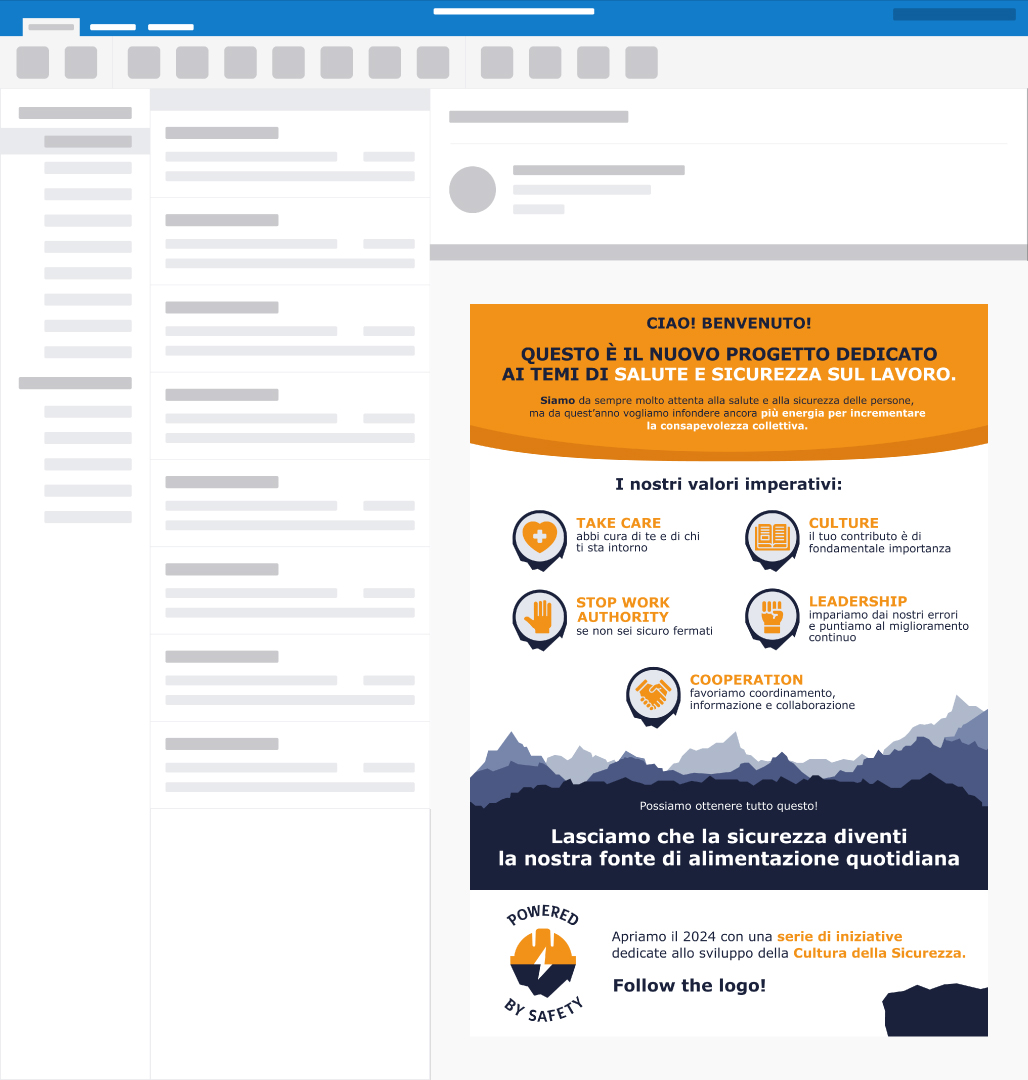 L’ufficio HSE e le sue iniziative diventano un brand: univoco e immediatamente riconoscibile, attraverso la creazione di un logo dal messaggio forte e memorabile e una campagna di comunicazione strutturata.